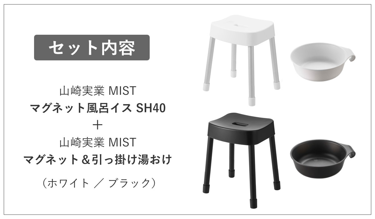 ![]() MIST マグネット風呂イス SH40 | ![]() MIST マグネット&引っ掛け湯おけ |