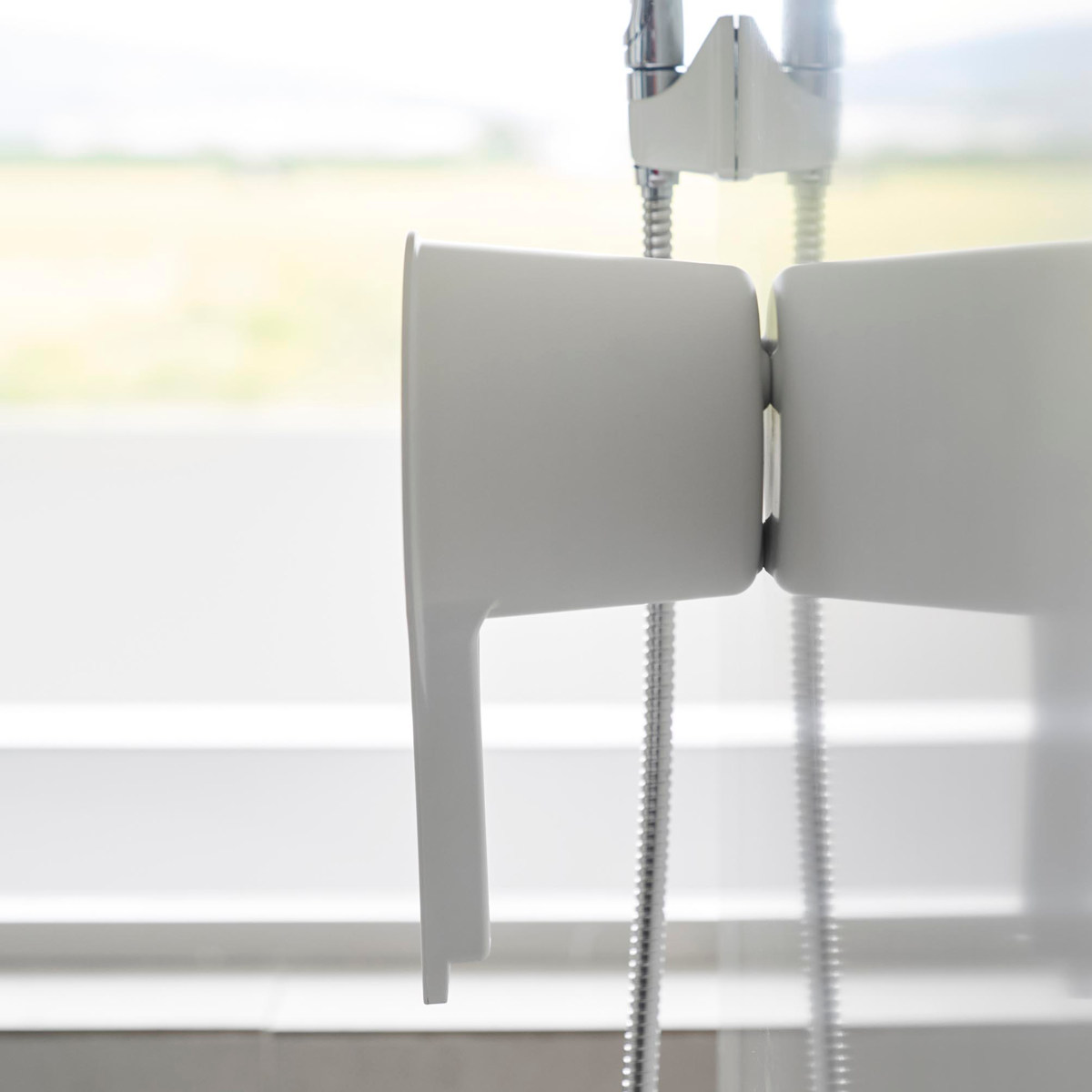 シャワーフックやタオルバーに引っ掛けて水切り・収納が可能です。その他にも浴室扉のハンドルや浴室物干し竿にもお使いいただけます。