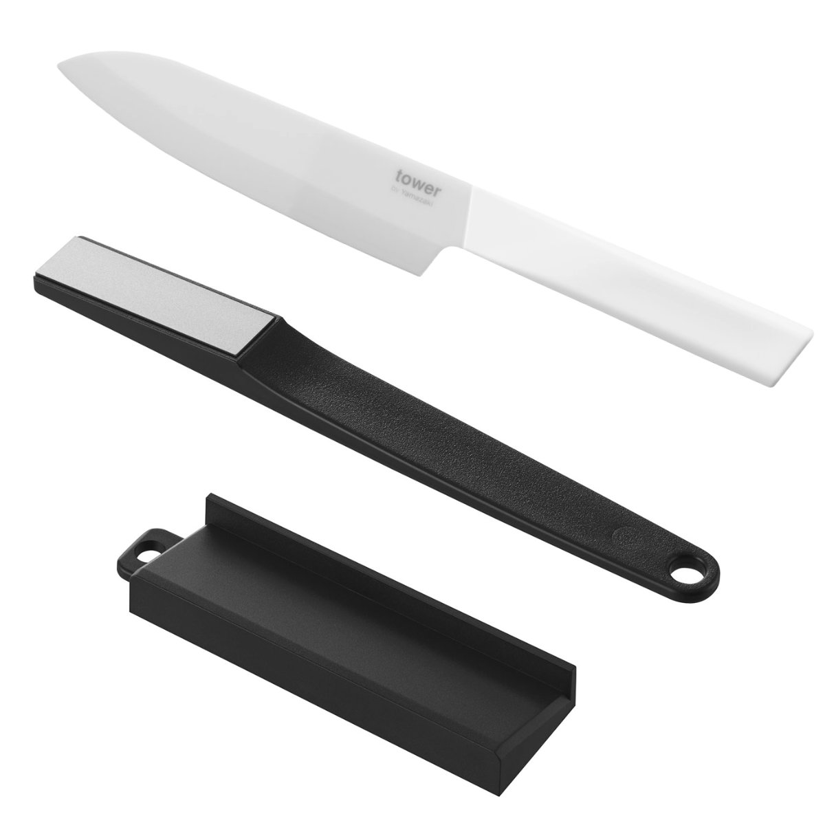 山崎実業 tower セラミックナイフ ペティ13cm シャープナー タワー ( タワーシリーズ ペティナイフ セラミック包丁 包丁 食洗機対応 セラミックナイフ用 13センチ 刃渡り 13 ) 【ホワイト】
