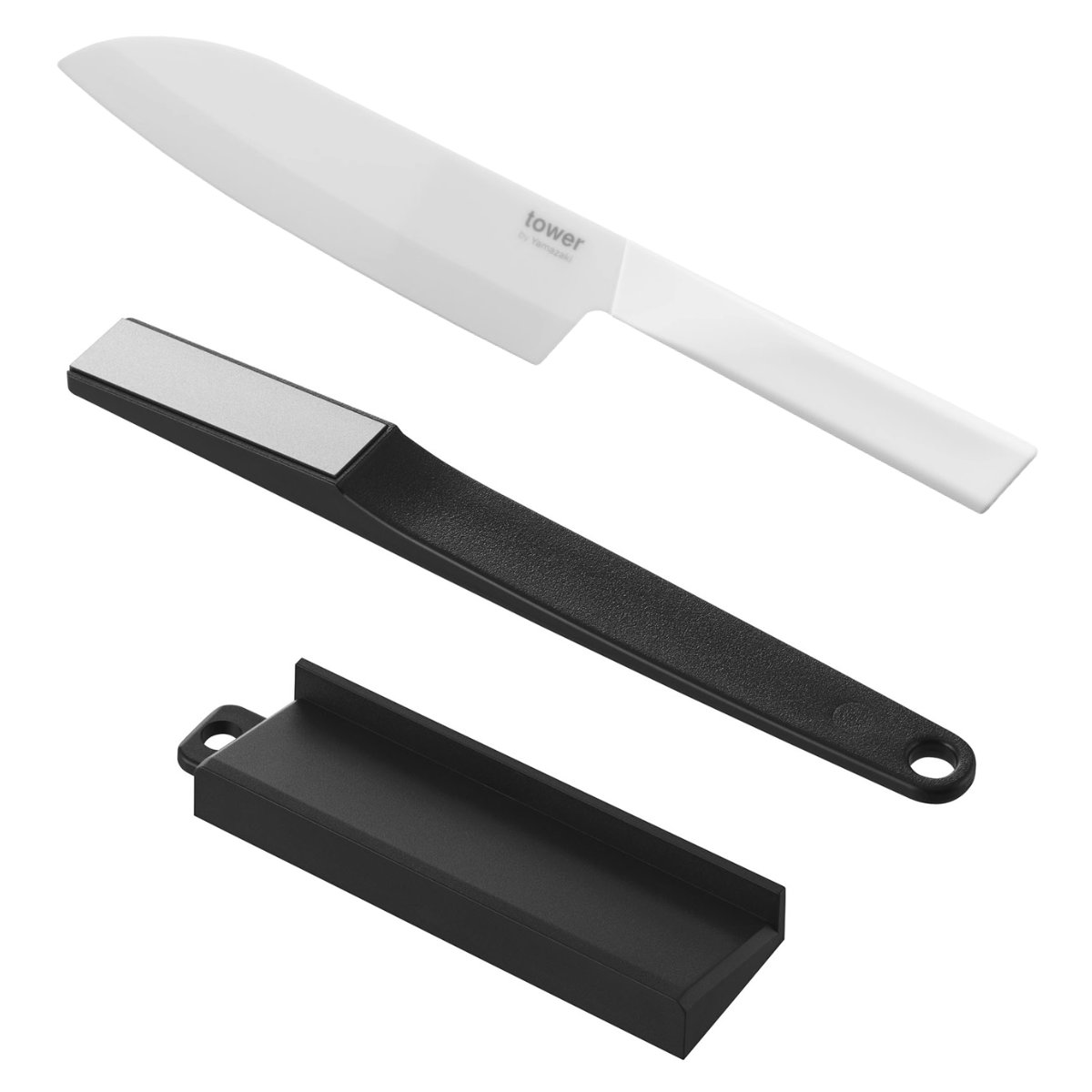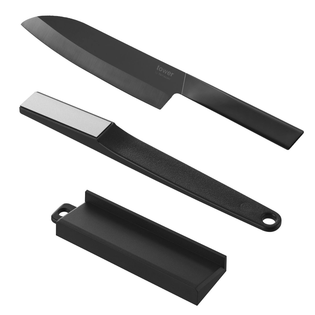 山崎実業 tower セラミックナイフ 三徳 16.5cm シャープナー タワー ( タワーシリーズ ペティナイフ セラミック包丁 16.5センチ 刃渡り 16 料理包丁 キッチンナイフ セラミック ナイフ ) 【ブラック】