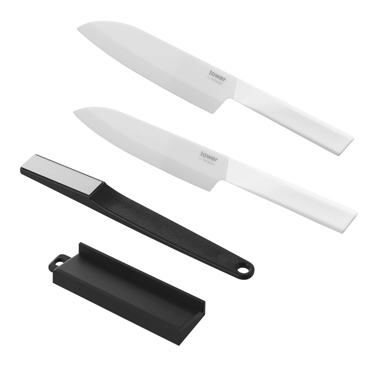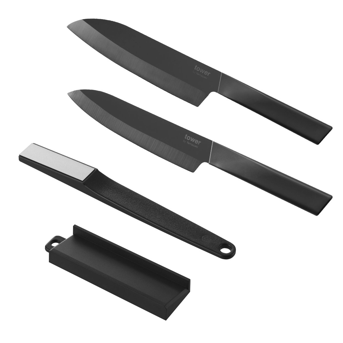 山崎実業 tower セラミックナイフ ペティ 三徳 シャープナー タワー ( タワーシリーズ ペティナイフ 三徳包丁 セラミック包丁 包丁 食洗機対応 13センチ 刃渡り 13 ) 【ブラック】