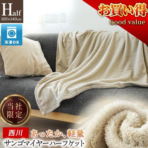 西川 サンゴマイヤー ハーフケット 毛布 ブランケット 薄手 ニューマイヤー毛布 100×140cm 洗える ウォッシャブル (ベージュ)【10C-BQ75025710BE】