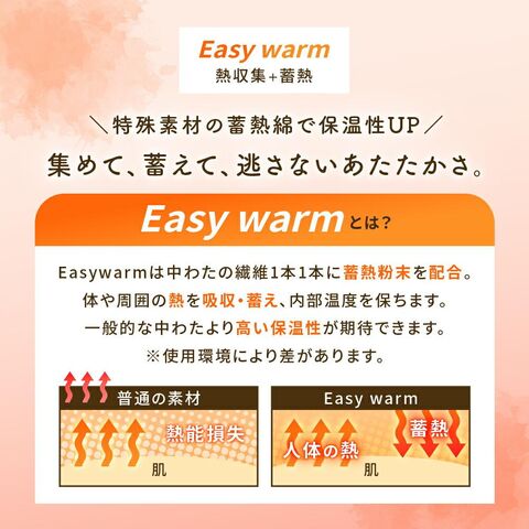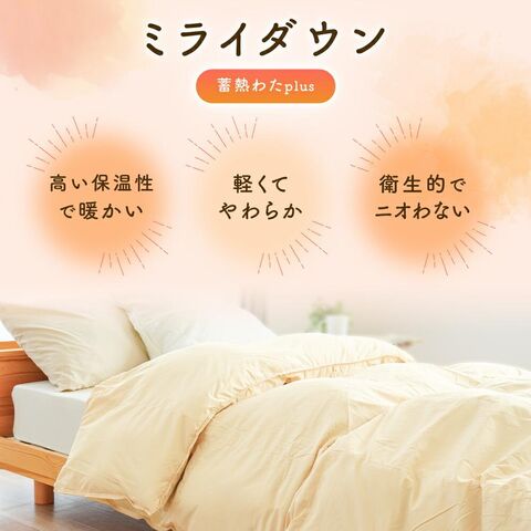 | ・特殊素材の蓄熱綿で保温性UP、集めて、蓄えて、逃さないあたたかさ。 Easywarmは中わたの繊維1本1本に蓄熱粉末を配合。体や周囲の熱を吸収・蓄え、内部温度を保ちます。一般的な中わたより高い保温性が期待できます。※使用環境により差があります。 ・高い保温性で暖かいダウンタッチわた(マイクロファイバー)+蓄熱わた〈Easywarm〉が空気層をつくり体熱を蓄えて逃しません。軽くても高保温で、朝までぽかぽか。 ・ふんわり軽くて柔らかい羽毛のように軽く、とろりと体になじむやさしさ。肩口まで包み込み負担の少ない掛け心地です。羽毛にアレルギーがある方にもおすすめです。 ・衛生的で臭わない快適性に優れた高機能中わたを採用。ダウン不使用で羽毛特有のにおいはなく、高密度生地が吹き出しやほこりを抑え、衛生的に使えます。 ・洗濯機で丸洗いOK睡眠中の汗や皮脂、フケなどの見えない汚れをすっきり洗い流し、ダニやアレルゲンも低減。気持ちいい寝心地が続きます。 洗濯後、中わたの偏りがある場合がございます。揉み込むようにわたをほぐしながら空気を含ませると元のふわふわした状態に戻ります。 ・熱を逃がさない立体キルト構造羽毛布団にも使われる立体キルトを採用し、マチ部分から熱が逃げない構造になっており身体のラインに優しくフィットします。 ・高密度生地がダニの侵入をブロック高密度生地を採用。生地目の隙間を抑えてダニの侵入経路を物理的にブロック。内部への入り込みを防ぎ、清潔で心地よい眠りを支えます。 | |