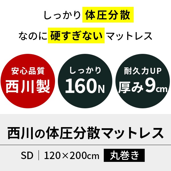 マットレス ラクラ RAKURA 敷布団 敷き布団 セミダブル 西川 体圧分散 凹凸 敷きふとん 1枚もの丸巻き【1SD-2460-10326GD】