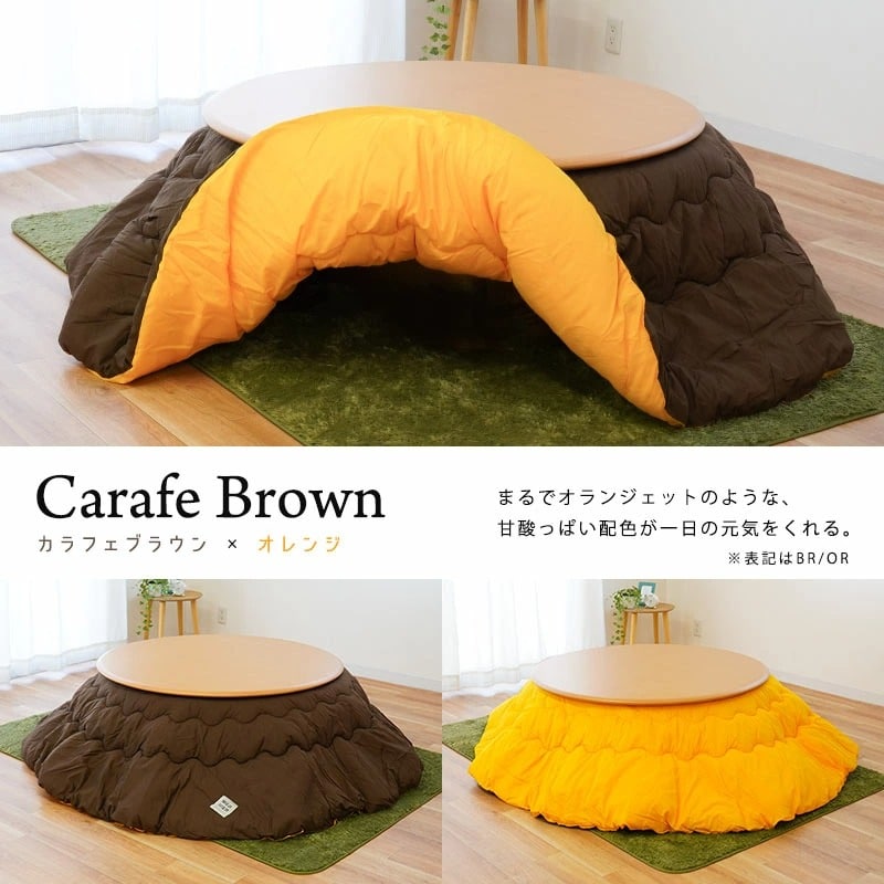 訳あり品 こたつ布団 円形 直径約205cm MUJI×MUJI 薄掛け 中わた1.61kg 無地 リバーシブル 直径約90cm 対応 (円形タイプ 直径約205cm ブラウン&オレンジ)【22B-409-700BROR】