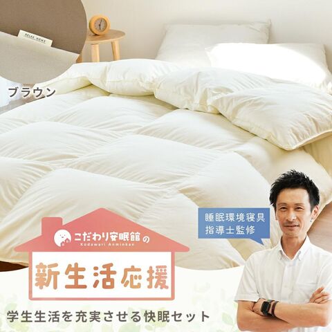 | ・4年間(6年間)の学生生活を充実させる快眠セット 何かと入り用な新生活。予算は限られていますよね・・・。そんな、限られた予算の中で少しでもいいものを!当店の寝具のプロが健康的な毎日を送りたい貴方のためにピックアップ!コスパの高いぐっすり眠れるセットです。 ・創業50周年以上の老舗ふとん屋が選んでいます。当社は地域に根付いた企業として、長年営業してきました。睡眠環境寝具指導士、ピローアドバイザー、などの眠りのプロが多数在籍しており、お客様に安心して良質な寝具をお買い求めいただけるよう日々努めております。 ・国産 ダウン85% 羽毛掛け布団ふんわり、軽くてあったかい羽毛布団。軽くて寝返りも打ちやすいので、体の負担を軽減。暖かいだけでなく吸湿・放湿性にも優れているので、睡眠時の不快感を軽減してくれます。 ・国産 清潔三層敷き布団ながく使える三層構造のしっかりタイプの敷き布団。1枚でも底付き感のない寝心地です。国内工場で製造されているため安心の品質です。側生地はお肌に優しく吸水性の高い綿100%。 ・国産 手洗いできる くぼみわた枕誰もが使いやすいホワイト系のわた入りまくら。真ん中のくぼみが頭部をしっかり安定させます。手洗いできるので清潔に保つことができます。 ・リバーシブル布団カバー3点セットシンプルな無地リバーシブルカラーの布団カバー。カラー展開も豊富で8色からお選びいただけます。シワになりにくく、乾きやすいポリエステル生地。抗菌防臭加工が施されているので安心です。 | |