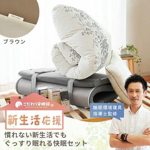 | ・慣れない新生活でもぐっすり眠れる快眠セット 新生活を始める皆さんへ、少しでもお役に立ちたくて快眠できるセットを考えてみました。西川の羽毛が片寄りにくい充填1.2kgの軽量羽毛布団、寝返りしやすい高反発WAVEマットレス、ふっくらした感触のホテルモードまくら。新しい環境で緊張した身体のことを考えて、快眠できるセットになっています。迷った時は是非参考にしてください。 ・創業50周年以上の老舗ふとん屋が選んでいます。当社は地域に根付いた企業として、長年営業してきました。睡眠環境寝具指導士、ピローアドバイザー、などの眠りのプロが多数在籍しており、お客様に安心して良質な寝具をお買い求めいただけるよう日々努めております。 ・西川の高品質羽毛布団羽毛の良さを引き立てるマチのあるキルトを採用。綿混の軽量生地を使い、ダウンをしっかり1.0kg充填することで、ふっくらとした仕上がりに。おしゃれな柄で、寝室を上質な空間に仕上げます。 ・寝心地を考えた西川の高反発WAVEマットレス「線」で支えるウェーブタイプ。寝返りがしやすい高反発素材を採用!無理なく自然な寝返りが打てる絶妙な硬さです。全身をバランスよく支えます。丸めやすく、ベルトでサクッとロール状に。使わないときは立てかけて湿気対策! ・リッチな寝心地のホテル仕様枕好きな方を上にして使える2層式。手洗いでのお洗濯が可能なので清潔にお使いいただけます。100回洗濯しても持続する抗菌・防臭加工が施されています。 | |