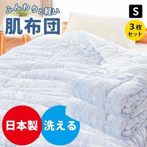 【2枚組で3980円・3枚組で5499円】【LINE登録で100円OFFクーポン】人気商品 日本製 肌布団 シングル 昔ながらの軽くてふわふわ ガーゼ調 洗える 肌掛け布団 夏掛け布団 国内仕上げ (3枚セット 502柄:ブルー)【2S-2502BL-3】