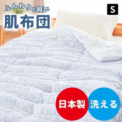 | ・気軽に使える肌掛け布団 夏でもお布団をかぶって眠るほうが安心したりする。 ふわっと軽くてちょっと頼りないようだけど、暑くなりすぎず、冷房と併用しても丁度良くきもちいい。 ワンシーズンでお布団を入れ替える派のあなたにオススメの、リーズナブルな肌布団です。 ・やわらか 綿混素材寝汗を吸水しやすいコットンを混ぜて織った綿混素材です。 ふんわりしなやかな仕上がりで、やわらかな心地でお休みいただけます。 | |
