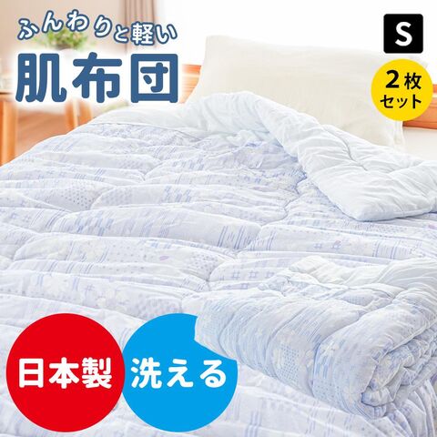 【2枚組】 肌布団 日本製 シングル 昔ながら の軽くてふわふわ ガーゼ調 洗える 人気商品 肌掛け布団 夏掛け布団 国内仕上げ (2枚セット 502柄:ブルー)【2S-2502BLBL】