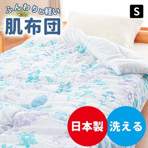 | ・気軽に使える肌掛け布団 夏でもお布団をかぶって眠るほうが安心したりする。 ふわっと軽くてちょっと頼りないようだけど、暑くなりすぎず、冷房と併用しても丁度良くきもちいい。 ワンシーズンでお布団を入れ替える派のあなたにオススメの、リーズナブルな肌布団です。 ・やわらか 綿混素材寝汗を吸水しやすいコットンを混ぜて織った綿混素材です。 ふんわりしなやかな仕上がりで、やわらかな心地でお休みいただけます。 | |