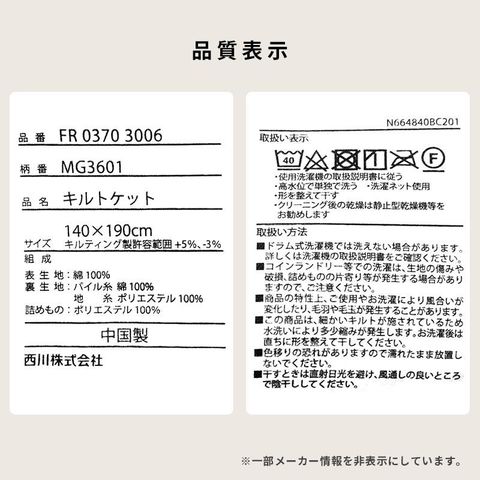 モリスギャラリー 西川 キルトケット シングル MG3601 140×190cm ふとんがわ 表 綿100% 裏 パイル綿100% 【2S-FR03703006C】のレビュー