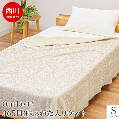 【2,000円値下!】西川 アウトラスト 365日使える綿入りケット シングル 140×190cm Outlast わた入り ケット キルトケット 吸放湿 (アイボリー)【2S-RR08069400IV】