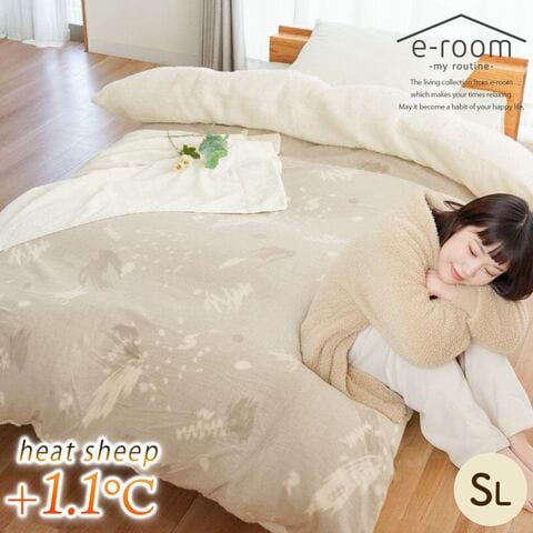 ★メーカー型落ち品にてお得★ e-room あったか掛けふとんカバー シープボア 吸湿発熱 暖か 掛け布団カバー 冬用 シングルロング 150×210cm (ベージュ)【7SA-3248-6102-4400BE】