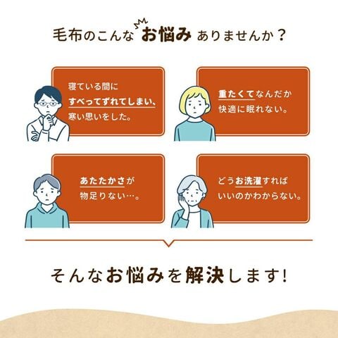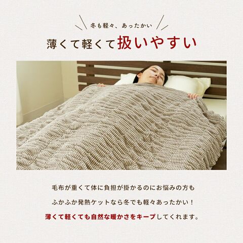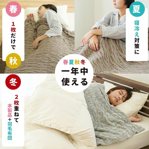 毛布が重くて体に負担が掛かるのにお悩みの方もこれで解決!冬でも軽々あったかい!薄くて軽くても自然な暖かさをキープしてくれます。春:秋は一枚だけで、夏は寝冷え対策に、冬は羽毛布団との併用で。オールシーズンお使いいただけます。
