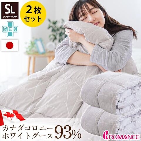 | ・カナダコロニーホワイトグースダウン93% カナダに点在する農場(コロニー)で自然と共生しながら集団生活を続けている高潔で素朴なドイツ系移民「ハテライト・ピープル」によって限定供給される羽毛です。そこで暮らす人々は、宗教的教義のもと大自然とひとつになった昔ながらの自給自足の生活を続けています。広大な土地で のびのびと飼育されたガチョウから採取される羽毛は「ハテライト・ピープル」が日々の糧を得るために丁寧に飼育されるので、安全で非常に希少性の高いものになります。 ・最高品質を満たしていることを保証するダウンマークR付きコロニアルダウンは年間の採取量が一定量を超えることなく、高い信頼のおける正規ルートのみを使って国外輸出されます。カナダ羽毛協会日本支部で発行されるダウンマークタグが付いています。これらは純粋なカナダ産羽毛を保証する、安心と信頼の証となります。 ・肌沿いが良く体にフィットする多マスキルトを採用一般的な30マス(5×6マス)より18個のマスを増やした、48マス(6×8マス)を採用しました。フィット性が高まり肩口のクールスポットの面積が少なくなるため、保温力が向上します。エアコン冷えも抑えて快適な睡眠環境に。 ・羽毛のふくらみを最大限に活かす軽量生地を使用従来の生地より軽いため、羽毛を圧迫せずふんわりとした自然な状態を保つため、羽毛布団に最適な側地素材です。また、とてもソフトでやさしい肌ざわりです。 ・安心の日本製、寝具の老舗「ロマンス小杉」創業70年を超える老舗寝具メーカーロマンス小杉は、お使いくださるお客様の寝心地、使い心地を追及する「ものづくり」にチャレンジしています。 ・SEK制菌加工認証番号取得済みSEK制菌、消臭加工清潔・衛生・快適さを保証する日本の「繊維評価技術協議会」のお墨付き。その証がSEKマークなのです。繊維上の細菌の増殖を抑制し、臭いを抑えます。 | |