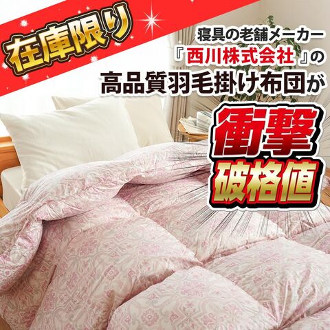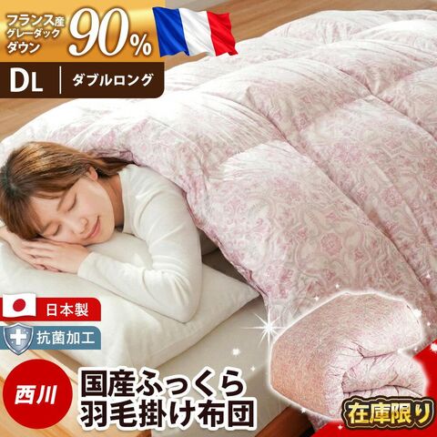 西川 羽毛布団 ダブル フランス産 グレーダックダウン90% 1.7kg ダブルロング 190×210cm 国産 日本製 フランス 綿混生地 抗菌加工 清潔 ふっくら 暖かい あたたか 秋 冬 寝具 羽毛ふとん 掛け布団 nishikawa (ダブルロング)【3DA-KA23753109PI】