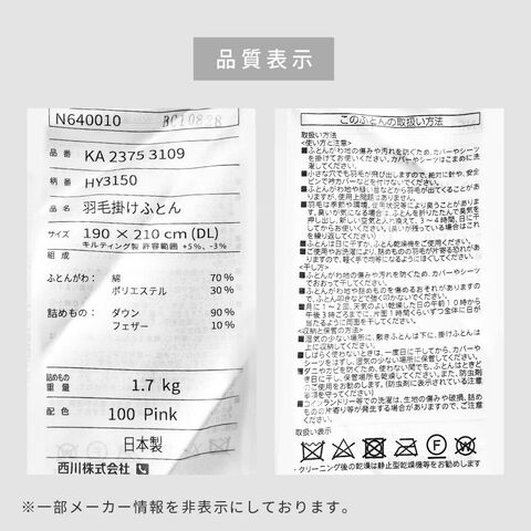 その他注意■こちらの商品は、2026年2月よりデザインと羽毛充填量を約1.8kgから約1.7kgに変更して再販売しております。