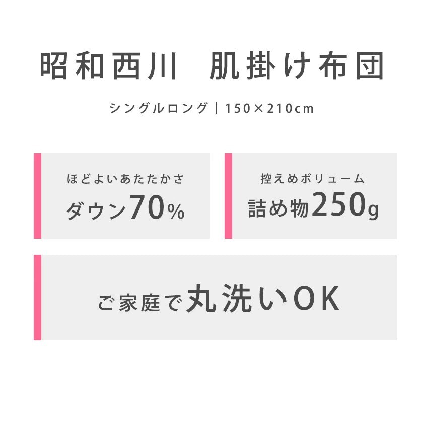 羽毛肌掛け布団 シングルロング 2枚セット 昭和西川 ダウン70% 夏 ダウンケット 洗える羽毛肌布団(ブルー・グレー 各色1枚)【3S-2211266901-BGY】