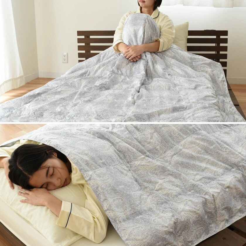 | 詰め物250gとひかえめなボリューム感。これが間の季節にちょうどいいんです。春の夜中は冷えが気になる…という方にも、暑くなってきたからそろそろエアコンを…という時期でも、眠っている間の体の冷えを防いでくれるから安心です。 |
