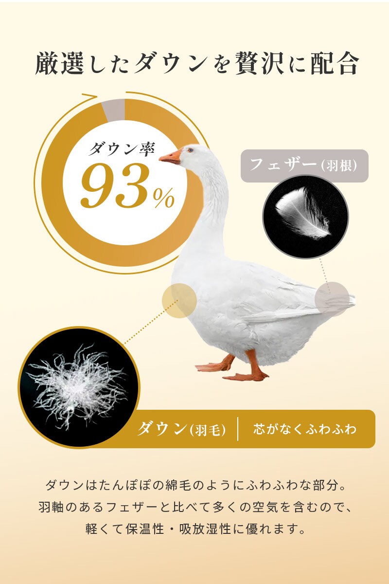 寒暖差の激しいハンガリーで育ったグースダウン93%配合!