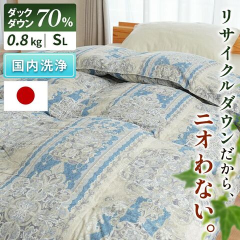 羽毛布団 シングル ロング 安心の 河田フェザー 再生羽毛 リサイクルダウン ダックダウン70% 日本製 0.8kg 立体キルト 洗浄度 2000mm 国内洗浄 リサイクル エコ サステナブル 150×210 (約0.8kg 7235柄/ブルー)【3SA-72351108BL】