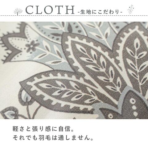 | DOWN -ダウンにこだわり- イギリス産ホワイトダックダウン使用。自然の恵みが育てた上質な羽毛は、暖かさ・嵩高性・耐久性に優れています。 西川だけの バイオアップ? 加工西川は羽毛を徹底洗浄。選別後に「加湿乾燥」「冷却除塵」を施し、軽く暖かくクリーンに。バイオアップ加工でほこり約26%削減。 西川の 清潔・安心ダウン高機能分散加工を施した羽毛。ウイルス・菌・ニオイ成分を拡散し、清潔で快適にお使いいただけます。 QUILT -キルトにこだわり-羽毛の持つふくらむ力を存分に発揮するため、羽毛の小部屋を立体的に作ったキルトです。縫い目の無駄を減らし、暖かさを逃がしません。 立体キルト羽毛の良さを引き立てるマチのあるキルティング。肌沿いが良く、暖かい空気を逃がしにくいので快適。マチで小部屋をつくり羽毛の片寄りを抑制。表裏を密着させない特殊縫製で、ふっくら感が続きます。 CLOTH -生地にこだわり-軽さと張り感に自信。それでも羽毛は通しません。 ダウンプルーフ加工 羽毛を包む特別な生地羽毛の飛び出しを防ぐダウンプルーフ加工生地。羽毛は繊細で吹き出しやすい。生地に熱と圧力をかけて織り目を密にするダウンプルーフ加工で、通気性を保ちながら羽毛の吹き出しを抑えます。 ・西川製品西川は、日本有数の寝具メーカー。1566年創業。450年という長い歴史があり、その中で培ってきた伝統や技術に準ずる品質の高さは類を見ません。安心できる寝具を選びたいのならメーカーで選んでみるのも◎ | |