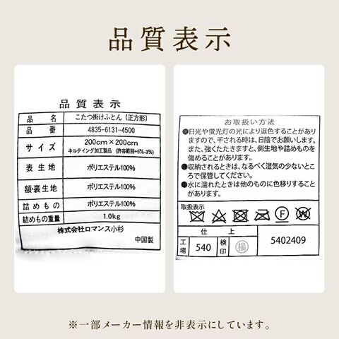 | サイズ | 約200×200cm(正方形)キルティング加工製品(許容範囲+5%-3%) |