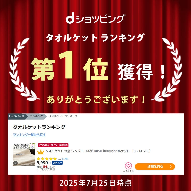 タオルケット 今治 シングル 日本製 KuSu 無添加タオルケット 【5S-41-200】