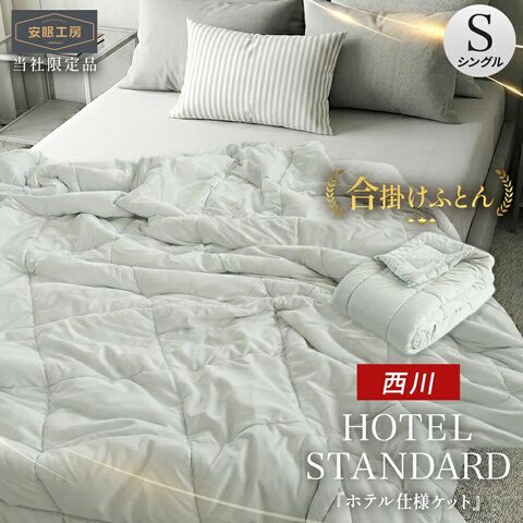 西川 合掛け布団 シングル ホテル仕様 ケット ふわもち マイクロ 天竺 合掛け 700g 掛け布団 2枚合わせ 西川ふとん 洗える 布団 掛け布団 オールシーズン キルトケット シングルロング 150×210cm 安眠工房 合い掛け (合掛け(700g) グレー)【5S-BE05080781GY】