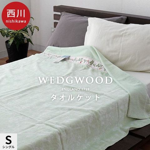 西川 タオルケット シングル 140×190cm ウェッジウッド 綿100% シャーリング グリーン WW3603 【2023SS】 【5S-FR03600012GN】