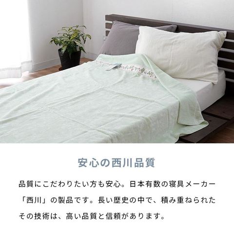 | ・英国ブランドWEDGWOOD 1759年創設。歴史と伝統に培われた「ウェッジウッド」。陶磁器を芸術品の域に高めた誇りが今も息づいています。自然の草花をモチーフにした美しい絵柄の数々が、洗練されたデザインとなって暮らしを彩ります。 ・お肌にやさしい綿100% 天然素材のコットンを100%使用したタオルケットです。 汗をかいてもスッと吸収する吸水性の高さと、敏感肌の方 にも安心してお使いいただけるやさしさが魅力な素材です。 ・なめらかなシャーリング加工 おもて面はやわらかくなめらかな肌触りのシャーリング加 工が施されています。お肌に直接触れる裏面は吸水性の高 いパイル生地で、ムレ感を軽減し快適な寝心地へ導きます。 ・安心の西川品質 西川株式会社は、1566年創業の日本有数の寝具メーカー。450年以上の長い歴史がある老舗です。よい睡眠を追求するために、これまでに培った伝統や技術を活かし、また最新の技術を取り入れながら新しい商品を創造しています。眠りや寝具に対するこだわりは強く、そのこだわりの強さが品質の高さに繋がっています。 | |