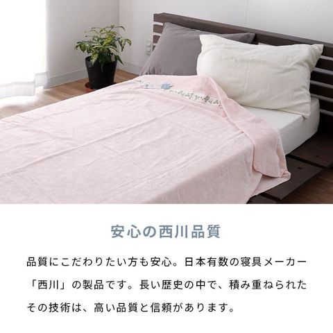 | ・英国ブランドWEDGWOOD 1759年創設。歴史と伝統に培われた「ウェッジウッド」。陶磁器を芸術品の域に高めた誇りが今も息づいています。自然の草花をモチーフにした美しい絵柄の数々が、洗練されたデザインとなって暮らしを彩ります。 ・お肌にやさしい綿100% 天然素材のコットンを100%使用したタオルケットです。 汗をかいてもスッと吸収する吸水性の高さと、敏感肌の方 にも安心してお使いいただけるやさしさが魅力な素材です。 ・なめらかなシャーリング加工 おもて面はやわらかくなめらかな肌触りのシャーリング加 工が施されています。お肌に直接触れる裏面は吸水性の高 いパイル生地で、ムレ感を軽減し快適な寝心地へ導きます。 ・安心の西川品質 西川株式会社は、1566年創業の日本有数の寝具メーカー。450年以上の長い歴史がある老舗です。よい睡眠を追求するために、これまでに培った伝統や技術を活かし、また最新の技術を取り入れながら新しい商品を創造しています。眠りや寝具に対するこだわりは強く、そのこだわりの強さが品質の高さに繋がっています。 | |