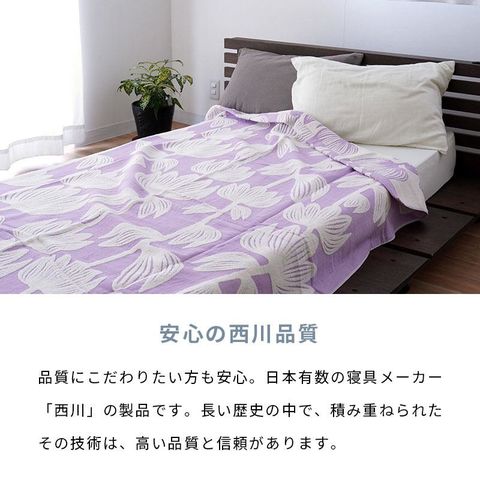 西川 タオルケット (ガーゼパイル) シングル フィンレイソン アルマ 140×190cm 綿100% ラベンダー 花柄 【5S-FR03802005-601L】
