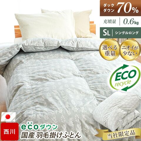 【12/3~12/15迄10%OFFクーポンあり】 羽毛布団 シングル 日本製洗浄度1000mm ecoダウン ダックダウン70% 再生羽毛0.6kg (0.6kg/合掛けふとん)【5S-KA05001309GY】