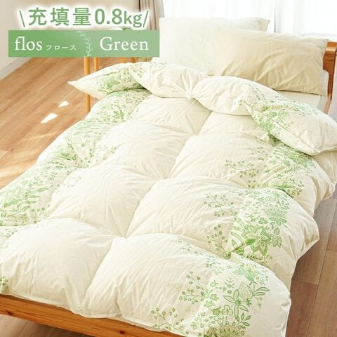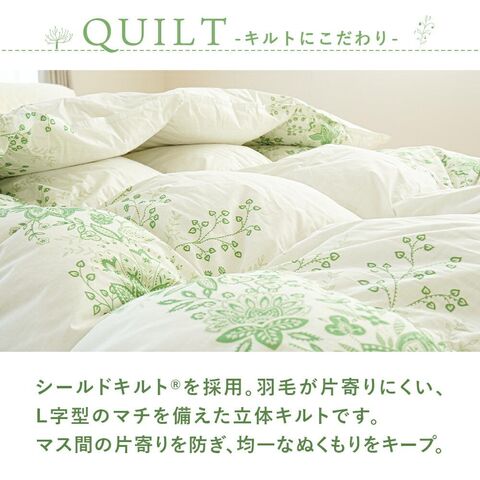 【11/18~4,000円値下!】西川 羽毛布団 シングル 日本製 ポーランド産ダウン90% 370dp以上抗菌加工 バイオアップ加工 片寄りにくいキルトホワイトダックダウン150×210cm シングルロング 0.8kg (0.8kg入り/グリーン)【5S-KA05003321GN】