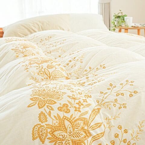 | 組成 | ふとんがわ:ポリエステル85%・綿15% 詰めもの:ダウン90%・フェザー10% |