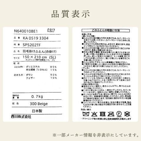 当社限定 西川 羽毛 合掛け 布団 シングル ホワイトダウン90% 0.7kg 春 秋 ホワイトダック ダックダウン (ベージュ)【5S-KA05193304BE】のレビュー