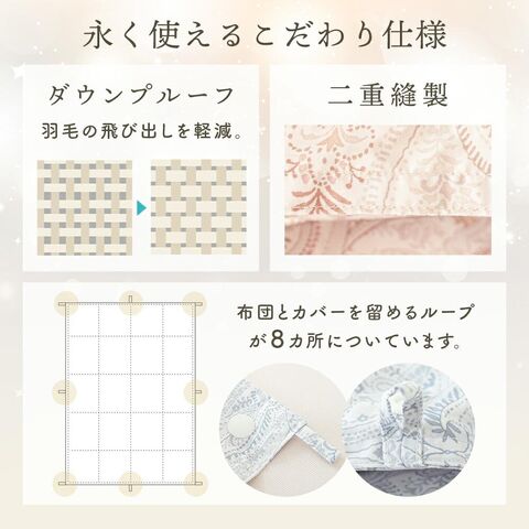 合い掛け布団と肌掛け布団を重ねることで、贅沢ボリュームに!寒い冬でも使える2枚合わせの掛け布団に変身し、1年中快適さが続き、長くお使いいただけます。※肌掛け布団や、2枚合わせセットは別ページでの販売になります。