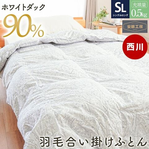 当社限定 西川 羽毛合掛け布団 シングル ホワイトダウン90% 0.5kg 春 夏 秋 ホワイトダック (グレー)【5S-KE05173303GY】