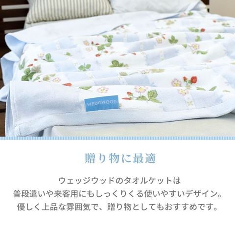 | ・英国ブランドWEDGWOOD ・可愛らしいいちご柄 ・しなやかなシャーリング生地 ・素肌に優しい綿100% ・日本製・西川の高品質タオルケット |