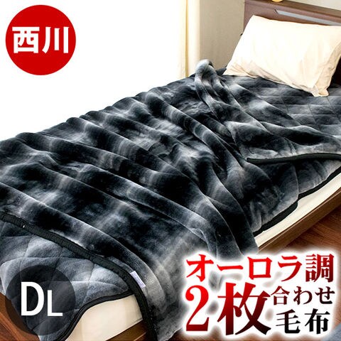 西川 2枚合わせ マイヤー毛布 ダブルロング コアラ グラデーション ボーダー ストライプ(180×210cm ブラック)【6DA-FQ22065206BK】