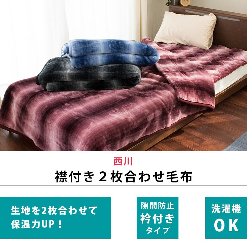 西川のふっくら二枚合わせマイヤー毛布、人気のグラデ×ボーダー柄デザイン掛け毛布のダブルサイズが登場!