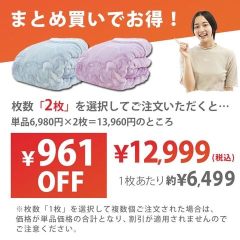 | ・ボリュームたっぷりふわふわ毛布。 ずっと触っていたくなるような、なめらかなフランネルのふわふわタッチ。ボリュームたっぷりなので、寒さの厳しい地域の方や寒がりの方、厚手で重めの毛布がお好みの方にぴったりな毛布に仕上がりました。 ・2枚合わせで保温力アップ。 2枚の毛布生地を縫い合わせて一枚の毛布にしました。 2枚重なった生地の間にはたっぷりの空気の層ができるので、暖かさを閉じ込め、高い保温力を発揮します。 もちろんふわふわのボリューム感も1枚もの以上の仕上がりに。 ・首元あったかふわふわ衿付き。 ふわっふわの衿付きで肩口や首元まであったかさをキープ! 冷たい外気の侵入も防ぎます。 | |