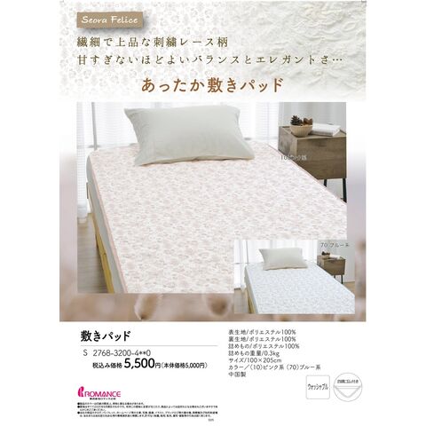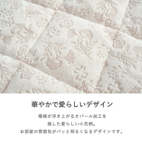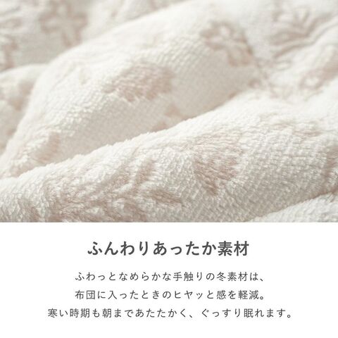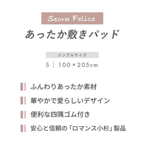 | ・ふんわりあったか素材 ふわっとなめらかな手触りの冬素材は、布団に入ったときのヒヤッと感を軽減。寒い時期も朝まであたたかく、ぐっすり眠れます。 ・華やかで愛らしいデザイン模様が浮き上がるオパール加工を施した愛らしい小花柄。お部屋の雰囲気がパッと明るくなるデザインです。 ・便利な四隅ゴム付きベッドマットレスにも、敷き布団にも使えます。四隅ゴム付きで着脱がとっても便利。寝返りが多い方でもズレにくく、快適に使用できます。 ・京都の老舗寝具メーカー「ロマンス小杉」「真面目なものづくり」への姿勢を評価され続けてきたからこそ、信頼ある同社の商品を自信をもっておすすめします。 ・洗濯機で手軽に洗えるポリエステル素材だから、お洗濯しても乾きやすい。ご家庭で丸洗いできて、毎日清潔にお使いいただけます。 | |