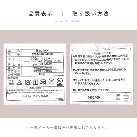 | サイズ | 約 100×205 cm (キルティング加工製品 許容範囲+5%-3%) |