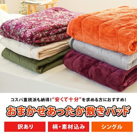 あったか敷パッド 訳あり シングル 100×200cm あったか 素材 ふわふわ 色柄 素材 (1枚単品)【6SB-530822N】