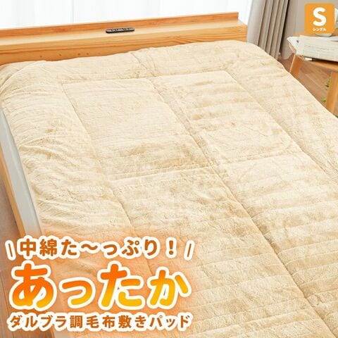 敷きパッド シングル 冬用 あったか フランネル 毛布敷パッド ダルブラ調 滑り止め加工 Wストッパー 置くだけ ズレ防止 洗える (ベージュ)【6SB-57560BE】