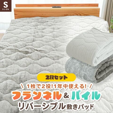 【2枚セット】あったか 敷きパッド シングル 冬用 フランネル パイル リバーシブル 敷パッド 毛布敷きパッド 敷き毛布 (2枚セット)【6SB-57777GY-2】