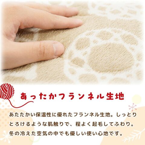 | ・あったかフランネル生地 あたたかい保温性に優れたフランネル生地。しっとりとろけるような肌触りで、程よく起毛してふわり。冬の冷えた空気の中でも優しい使い心地です。 ・フィットする心地よいなめらかさ極細繊維が生み出す、しっとりなめらかな感触。やわらかく体にフィットする素材が、ベッドに敷くだけで、あたたかな眠りを届けてくれます。 ・ズレを防止する四隅ゴム付き敷きパッドの四隅には、お布団と敷きパッドを固定してズレを防止するゴムバンド付き。敷き布団にもマットレスにもお使いいただけます。 ・丸洗いできて、いつでも清潔汚れても洗濯機で手軽に洗えるから、いつでも清潔。軽くて扱いやすいので、日々のお手入れもラクに続けられます。 ・かわいいコットンレース柄レース模様をモチーフにした、上品なデザイン。繊細な模様がふんわりと浮かび上がるようにプリントされ、ナチュラルな雰囲気を引き立てます。 | |